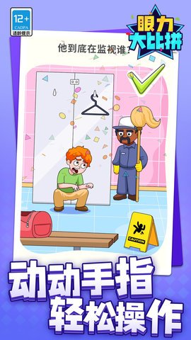 2、 眼力大比拼是一款休闲益智类的闯关游戏,玩家需要通过操作不同的物品来解决各种难题,完成关卡任务。