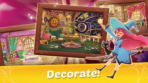 2、 除了消除和建造,女巫与猫手游最新版还提供了独特的三消游戏和有趣的关卡。