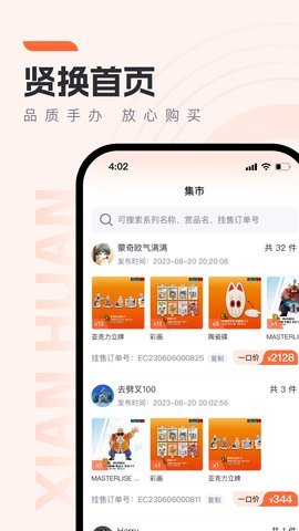 2、贤换App提供专业便捷化的一站式手办交易解决方案,让用户能够随时在线发现自己心仪的二次元手办产品,并且一键轻松下单进行安全交易。