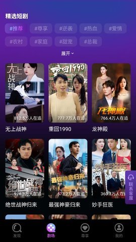 2、不论是逆袭、热血、爱情还是总裁题材,这里都有各种类型的短剧集,剧情紧凑扣人心弦,让人欲罢不能。