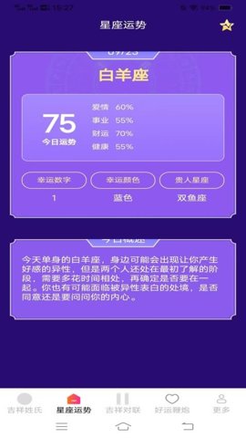 吉祥有好运软件的特色在于其多功能性和文化深度。星座运势功能提供了详尽的运势解读,用户可以根据自己的星座,了解每日的运势变化,帮助他们在生活和工作中做出更好的选择。姓氏查询功能让用户可以轻松获取姓氏的相关信息,包括排名和吉祥寓意,增加了用户对自身文化的认同感。软件中提供的对联内容丰富多样,用户可以随时在线欣赏和学习,感受传统文化的魅力。电子鞭炮的加入,增强了节日的气氛,让用户在使用软件的也能感受到浓厚的节日氛围。