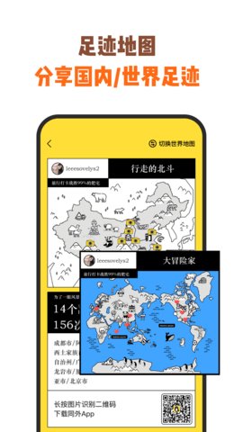 2、用户可以在国内或国际地图上标记自己去过的地方,并且可以使用照片、视频和表情来记录这些经历。