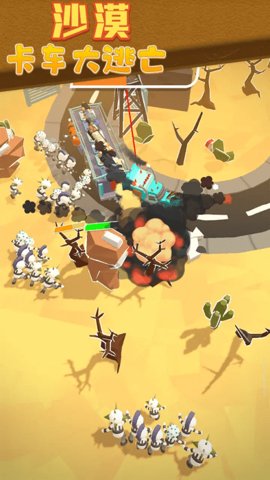 1、在沙漠中驾驶卡车,玩家需要不断收集资源、修理卡车和升级武器,以增强自己的生存能力。