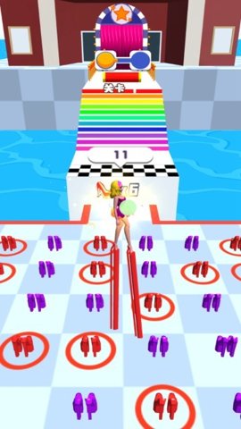 1、通过操控高跟鞋前进,收集鞋子,完成各个关卡的挑战,玩家可以获得丰富的游戏奖励。