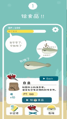 1、 在游戏开始时,玩家需要购买一定面积的水族馆、必要的器材和一些基础的鱼类。