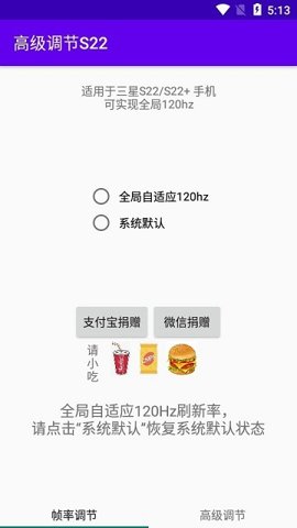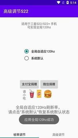 1、该软件是专门为三星S22和S22+手机设计的,可以充分利用手机的高刷新率屏幕,实现全局120hz的刷新率。