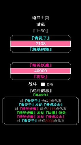 3、 新人进入游戏后,需要手动点击修真,直到筑基完成后才会自动增加修为。