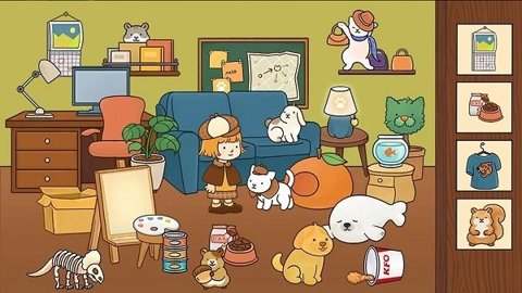 1、游戏采用了治愈画风设计,在游戏中玩家需要不断地寻找规定的物品。