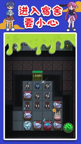 4、玩家需要躲避猛鬼的追捕,寻找适合自己的宿舍躲避,并发展经济建造炮台,抵御猛鬼的进攻。
