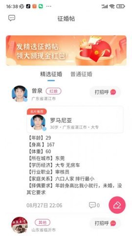 1、用户可以通过芯缘App与其他用户建立,扩大自己的社交圈子。
