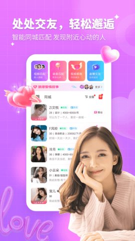 3、 我们的同城相亲功能可以让你与附近的陌生人进行语音和视频聊天,平台会根据地理位置和兴趣爱好智能推荐附近的单身异性。