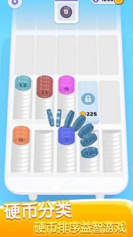 3、 硬币分类游戏是一种简单易上手的休闲益智游戏,具有简单易懂的规则、精美的画面、挑战性和趣味性兼备以及高可玩性和重复性等特点。
