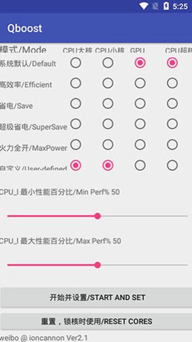 1、它支持高通骁龙CPU的大核、小核和GPU调节,可以实现满血复活或锁定频率范围。
