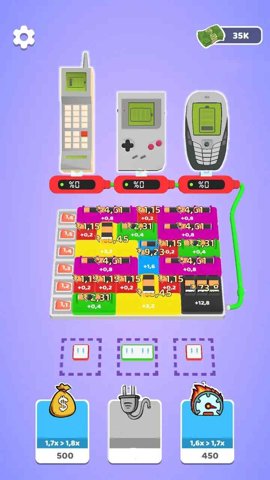 充电大亨是一款非常有趣的游戏,它是一款休闲益智类手游,玩法独具趣味性。游戏的目标是让玩家选择正确的充电接口连接起来,给各种数码电子进行充电。游戏难度逐渐增加,多余的插口干扰项越来越多,需要玩家更加细心和耐心。