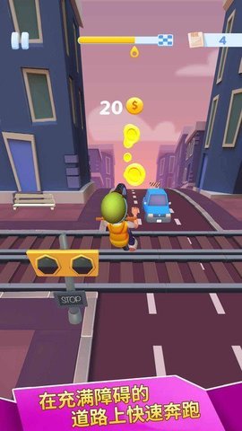 2、游戏采用创新的城市跑酷冒险玩法,让玩家通过自己的指尖跳跃滑动来躲避障碍物,并获得游戏道具,取得胜利。