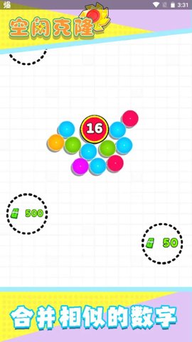 1、空闲克隆是一款非常有趣的益智休闲游戏,玩法简单,但是升级数字和突破关卡需要一定的策略和技巧。