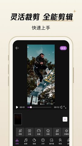 2、此外该应用还提供了简单操作、轻松剪辑每个剪裁瞬间的视频编辑功能,让用户能够更加方便地进行视频剪辑。