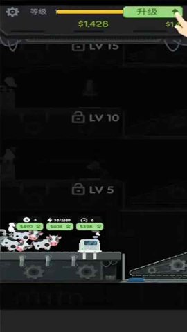 2、游戏中的机器分为不同的品阶,每种品阶都有不同的能力,升级机器可以轻松实现自动化的生产,让玩家更加轻松地获取海量金币。