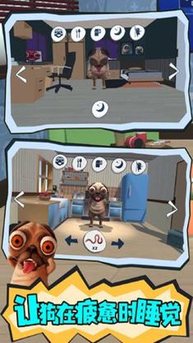1、会说话的神烦狗是一款让玩家可以和狗狗建立深入感情的养成宠物游戏。