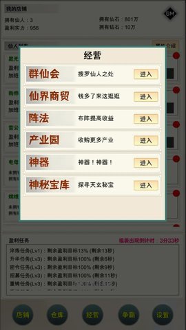 2、通过购买强力仙人,收集功法神器,你可以逐渐提升自己的实力,享受在仙界当富豪的爽文体验。