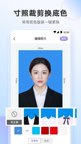 1、此外软件还提供了快速换色功能,可以帮助用户节约,一键换背景色,让用户能够利用这款软件制作出最好看的证件照。