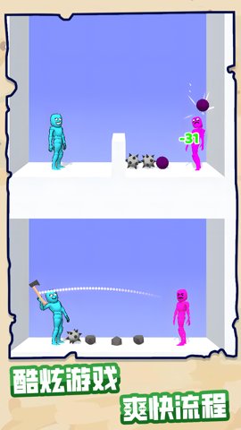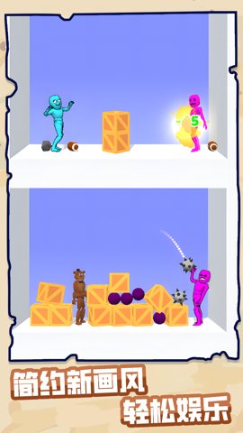 武器大对决是一款充满挑战和乐趣的游戏,玩家需要熟悉不同的简笔画兵种,开始战斗。游戏中有各种属性的武器,玩家可以利用摇杆释放技能,瞄准对手投掷武器,消灭一波波敌人。同时游戏还提供了休闲创意人物自由搭配的模式,玩家可以选择不同的火柴人进行战斗,利用各种不同的武器来造成伤害,快速反应,冷静打击,克敌制胜。