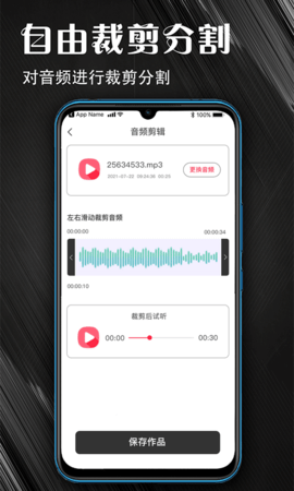 MP3音频提取器是一款AI音频处理应用,具有多种功能,可以对各类型的音频进行剪切制作,截取出你想要的部分。不仅支持提取视频中的音频,还能从视频中提取所需的音频,并对提取的音频进行任意裁剪,设置为手机铃声。软件还支持一键切换多个音频,自由拖动操作,简单易用。