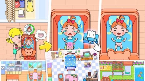 2、这款游戏包含了许多手游元素,让你在照顾宝宝、哄小朋友睡觉和玩耍的同时享受到丰富多彩的游戏内容。