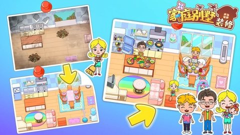 1、家庭别墅装饰设计是一款卡通风格的房屋装修游戏。
