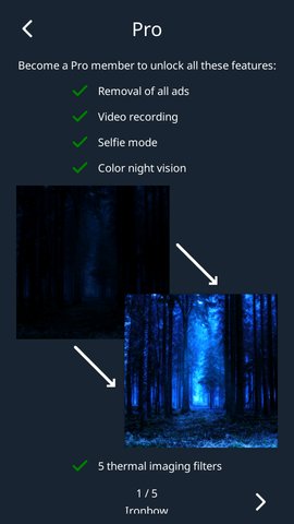 1、 特别值得一提的是,DarkLens还提供了夜视相机功能,适合在晚上使用。