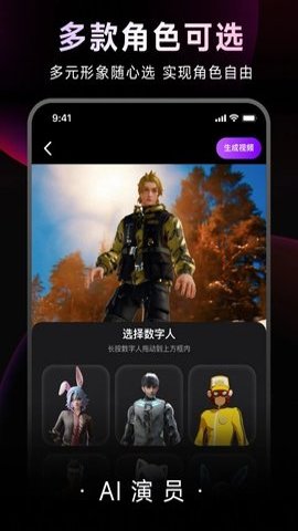 1、这个应用操作简单,能够真实还原数字人,还提供多种类型的角色供用户选择,让视频创作更有趣。