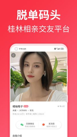 2、 作为桂林专业的相亲交友平台,脱单码头一直追求靠谱、精准、可信的用户体验。