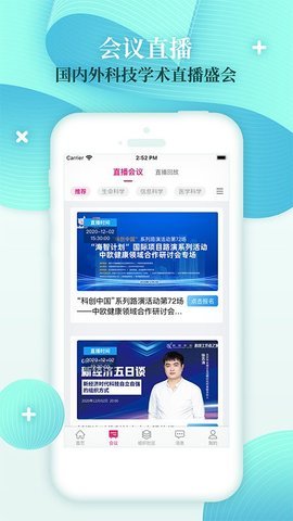 2、此外还有丰富的科技视频和会议直播回看,用户可以随时观看和学习。