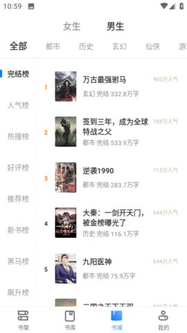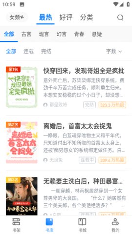 3、此外该应用还收录了热门小说书籍,用户可以通过排行榜查看最近最受欢迎的小说,并随意畅读。