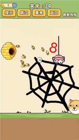 3、 在脑洞智商大考验中,玩家需要通过画线来保护狗头,避免受到蜜蜂的伤害。