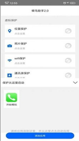 2、使用蜂鸟助手非常简单,只需启动应用并赋予相关权限,然后单击地图位置,点击启动按钮即可。