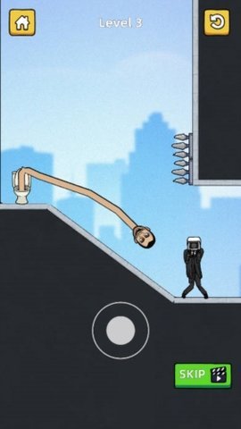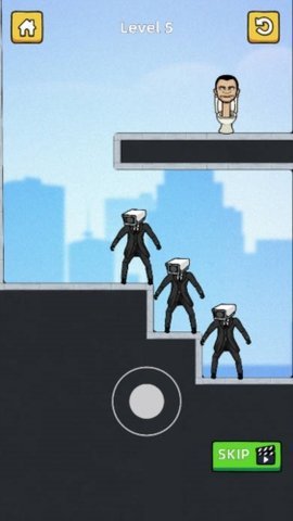 2、玩家将操控马桶人进行闯关,通过指尖画线来控制马桶人的走向,一路上要避开各种障碍,并消灭躲藏的敌人。