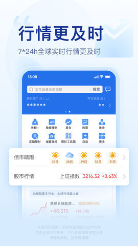 腾讯理财通是一款由腾讯公司官方出品的基金应用,为高端用户提供专业的理财服务。软件具有多种功能,包括持仓诊断、快速取出、指数估值等专业的选基工具,投资分析和市场解读等。腾讯理财通与全市场领先的金融机构合作,为超过2亿用户提供安全、专业、多样化的理财服务。