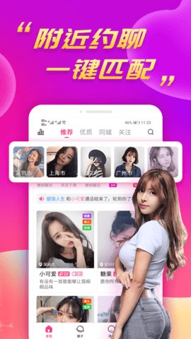 3、用户可以与同城兴趣相投的女生进行畅聊,进行附近社交、兴趣约会和在线互动。
