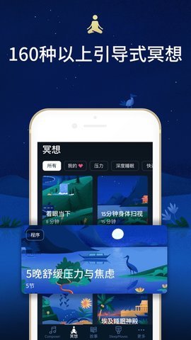 2、 我们提供了超过160种冥想和睡前运动,包括舒适睡眠、缓解压力和焦虑、减轻耳鸣、瑜伽休息术等等。