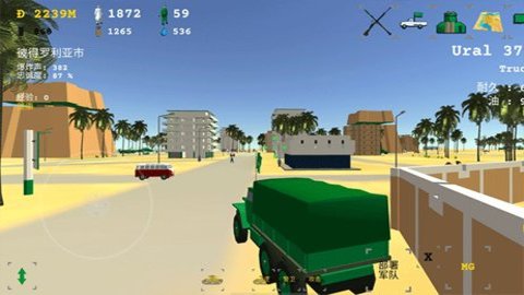 3、游戏中有许多别致的建筑和炫酷的交通工具供玩家任意使用,玩家可以与小伙伴们一起消灭叛军。