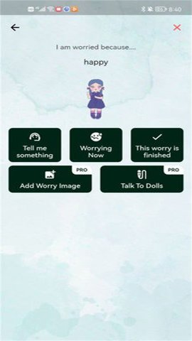 3、 当用户的烦恼得到解决或者结束时,他们可以回来告诉解忧娃娃,并点击“thisworryisfinished”按钮,这样解忧娃娃也会消失。