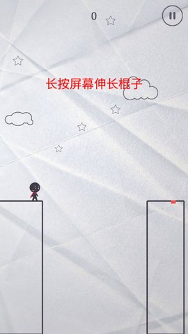 2、其实游戏操作简单,但是想要控制的刚刚好就难了,比如棍子英雄这个模式,想让火柴人越过沟壑,需要有桥梁,桥梁的长短,是按着屏幕根据长短来控制的。