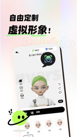 1、 POKEDO破壳豆是一款非常有趣和创新的虚拟社交应用。