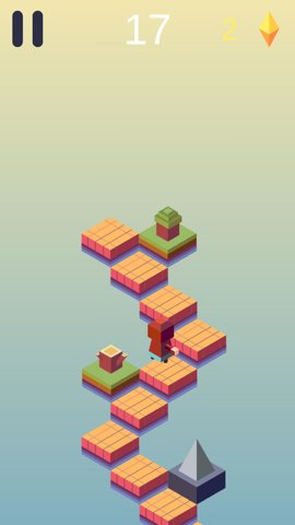 2、玩家需要通过点击屏幕控制角色进行跳跃,跳到正确的石块上并尽可能获得高分。