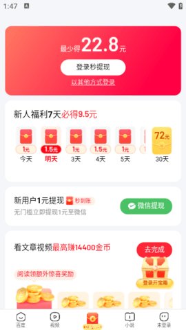 2、 具体来说,以下是一些赚取金币的方法: 阅读新闻/观看视频:通过每天签到、看文章、看视频、看小说来赚取金币。