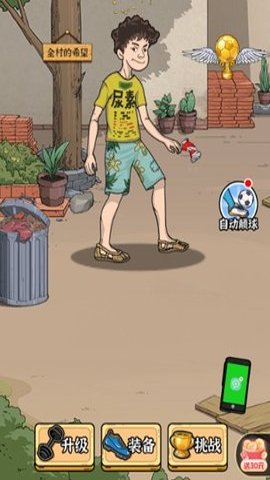 2、游戏中还有丰富多样的趣味小关卡,玩家需要通过点击屏幕疯狂踢足球来获取金币,然后使用金币提升自己的能力,成为国足的希望。