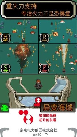 3、 作为防卫队的一员,玩家将装备各种武器和装备,与变异海洋生物展开弹幕射击战斗。