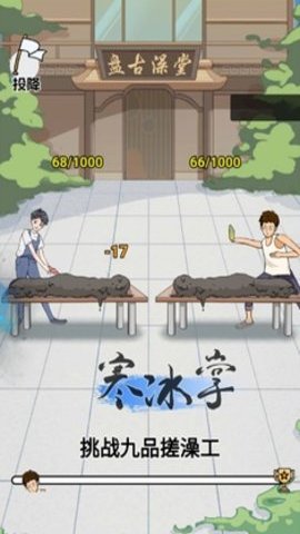 3、 游戏还设有挑战模式,玩家可以与其他玩家进行比拼,看谁能在规定内搓澡的顾客数量最多,体验竞技的乐趣。