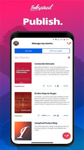 3、Inkspiredapp提供了一个专注于创作和阅读的社区,使用户可以与其他和读者分享和讨论作品。